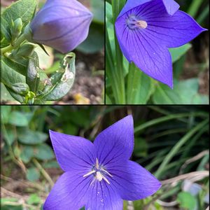 こんばんは🌙.*·̩͙ 毎日毎日 暑いという言葉しか出てこない中、頑張って咲いている庭のお花をコラージュしてみました🌸🌼*・ ① キキョウ 春に引越しして行かれた お隣さんに頂いたお花、こんなに綺麗なお花だったとは…😍 近くで見て びっくり(Ꙭ )!! ② ムクゲ 4、5年ほど前に実家の木を挿し木しました。 毎年咲いていますが 鉢が小さいのか あまり大きくなっていません。 ③ センニチコウ このピンクの色が凄く可愛くてお気に入りのお花です。 冬は玄関内に入れたり、ダンボールに入れたりしながら 4年目のお花が咲いてくれました·͜·ᰔᩚ ④ ポーチュラカ 🏷は 京ちゅらかと書いてありました。 イルミネーションピンクとホワイトアンドイエローの2株 🏷の写真を見て 可愛いのでお迎えしました。 今のところ まだ色が少し薄いようですが これから変わるのかな…(*¨*)?見守り中🔍⸒⸒ ⑤ タチアオイ 以前 投稿したタチアオイ 今はお花も終わって 種が出来てきましたෆ˚*