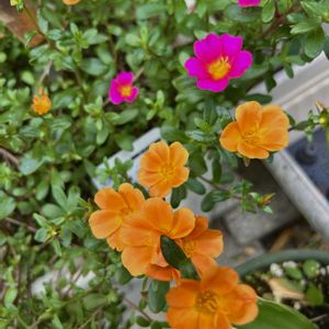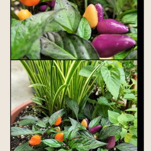 雨の月曜日 🏷️月曜日にビタミンカラー ① 昨日 出会った トウガラシ コンガ 寄せ植えの空いた所に入れました ② 今朝のお庭のビタミンカラー トレニア バイロニー カランコエ エキナセア ③ 晴れた日のポーチュラカ 京ちゅらか このあと ✂️しました