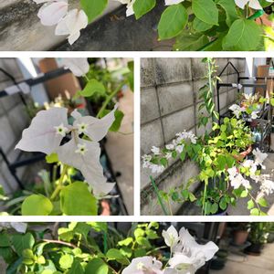 お庭パトロール🏃🏻♀️ ① 🏷️白い水曜日♡ ブーゲンビリア🤍🌿 またまた花かずが増えました 風に揺れて綺麗です〜 ② 京ちゅらか ホワイト&イエロー ホワイト&ピンクはツインズ 暑いから 白部分がおおいかな 可愛く咲いています 朝は ほんの少し 涼しくなったかな (願望かも🤔)