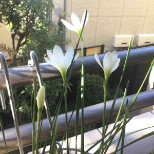 今朝のpicです。 タマスダレのつぼみがありました。 午後には咲きましたが💚🤍💚🤍💚