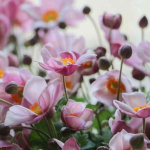 シュウメイギク 紫がかった優しいピンク色も 花姿もとても可愛いくて ずっと眺めていたくなります。