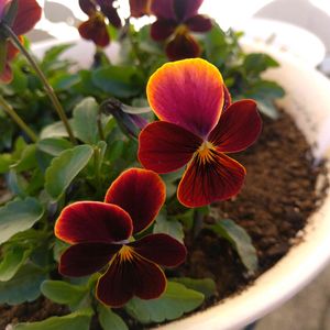 2株共 ビビ プラムアンティーク 種蒔きからのビオラです 手前の株は薄紫色というか ピンクに近く ビビ ピンクアンティークに 似ているような気がします(^^)