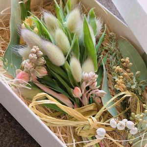 春の贈りもの。 今年初収穫のラグラスはボン🐱のママとボンの兄弟に贈ろうね🌿 こんな雑草を送りあえる友達は彼女だけ🍀秋には彼女からボンにってどんぐりが送られてきたのでそのお返し。