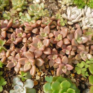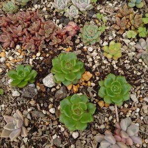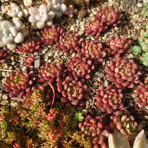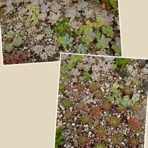 こんばんは(o^-^o) こちら職場の虹の玉✨ うまく拡大できなくて変な写真・・・(;´Д`) 虹の玉、ブロンズ姫、だるま秀麗、養老、月花美人、アエオ、バイネシーあたりはもしかしたら地植えの方がいい暴れっぷりをするのかもしれない(゜ロ゜;ノ)ノ あとパリダとかも💦 鉢で育ててるうちの子よりも肉厚だし蒸れ知らず💨 まだスカスカだけど、みんな元気です💕