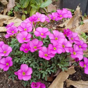 オキザリスの回りの 🍂枯れ葉🍂が、ゴールドで、何かいい感じ✨ に見えました😊 今日、急遽仕事に行ったら、新しいお花に植え替えられていました❇️