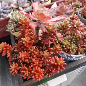 おはようございます☀️🙋♀️❗ 昨日の嵐で、スタンド鉢用のビニールハウスが危うく吹き飛ばされそうになり、大変でした😱 今シーズンの寄せ植えはおしまい…と言いながらも、おひとり様をお迎えしてしまいました☺️ ハートディライト 🍀肉厚の大苗です✨真っ赤に紅葉しています🍁 フィオナ×ルブラ エボニー×クラバツム コロラータ×タバルバ🍀等々☺️ お外でバッチリ紅葉してもらって🍁越冬頑張るぞ~👍️