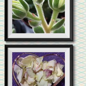 こんばんは〜〜(╹◡╹)♡ 上がハムシーの花芽です╰(*´︶`*)╯♡ 下はお庭で咲いてたフリュイさんをハートのガラスに敷き詰めましたぁ〜〜╰(*´︶`*)╯♡ 濃厚な香りがしています💜💜💜