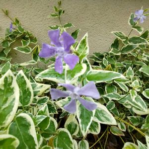 🏷️水曜日は水色 昨日出会えた…💚🤍🌿 斑入りツルニチニチソウ 💜🤍💜🌿💜🤍💜🌿🙋🏻♀️ 可愛い〜💜🤍💜🌿🌱1️⃣2️⃣ 花瓶のスターチス💜さん 白いのがお花🤍🤗 💜🩵のはガク?だったかな?!🙋🏻♀️😅3️⃣ 我が家の 🏷️オジさん顔ビオラ・パンジー さん♡いました〜今朝😅 💜💙🤍🩵🌱🤗💞4️⃣5️⃣