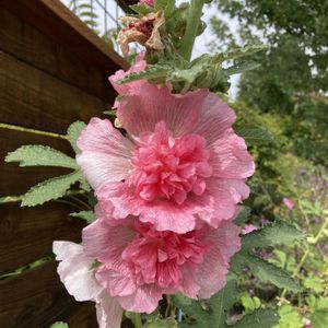 連投失礼します😊🍀 八重咲きのタチアオイ…🤭💕 ピンク🩷が可愛い〜💓 なぜか同じ株から一重も咲いてます❣️