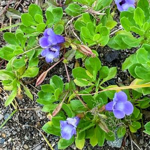 散歩道で出会ったお花 通り道のHotel駐車場花壇に 仕事帰りに Google cameraで調べたら色々な名前が出て来て、名前が分かりません。 クロンボ様から教えて頂きました。 青いお花はトレニア 緑の葉っぱ🍃は オステオスペルマム と教えて頂きました。 ありがとうございました🙇🏻♀️
