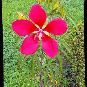 ハッキリとした赤い色で、150センチくらいの丈のお花😊 風にゆらゆらと、右左に揺れながら、しっかり立っていました