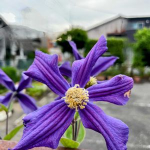 クレマチスのお花 通り道の畑のフェンスをよじ登って顔出していました。 仕事帰りに