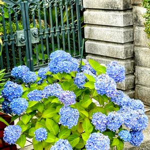 鉢植えの紫陽花 通り道のお宅の門の側に 遠くから大きな鉢植えが見えました 仕事帰りに