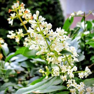 イボタノキ🌿 2~3cmの白い房状の白い花です。 よく見ると1つ1つがユリの花の様な形ですごーく可愛いんですよ💚 丈夫なのでライラックの接木にも使われたりするそう。 花言葉がとても素敵💕 “良い友を持つ”ですって ( ^-^)ノ∠※。.:*:・'°☆