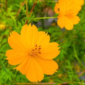 朝の散歩道で🌅🚶➡️ キバナコスモスの黄色とオレンジ色のお花です😆👍🌼🌼 綺麗です✨🎶✨