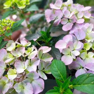 紫陽花達も色付いてきました♪ ①瀬戸の月 よしよしブルー🩵に咲いておりこうじゃないの ②佳澄 ピンク🩷いつも出だしはピンクだから…。きっと…。 ③クリスタルヴェール2 冬に苗でお迎えしたクリスタルヴェール2花が咲いた〜!でもピンク🩷ちよっと中心が一部🩵だけど…。期待しておこう。 ④フレンチボレロ 母にプレゼント🎁したフレンチボレロ、挿木して分けてもらいました✨やった〜! でもまたピンク🩷 ⑤ヤマアジサイ十六夜 お迎えした時は紫🟣→ミョウバンで青🩵へ→またピンク🩷が入ってきた〜(。º̩̩́⌓º̩̩̀).゜ どうしてもうちに来るとピンクになる紫陽花達。いかんいかん、とミョウバン水追加であげてみた。さて青になるかな。