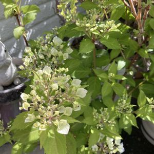 我が家の門扉の右側には①ラグランジアクリスタルヴェール2、左側には②アジサイサマークラッシュを配置しています。一昨日の雨と風でサマークラッシュは枝が曲がって広がっちゃいました💦 どちらも寒肥に赤アジサイの肥料をあげたので、サマークラッシュは去年よりも赤くなって欲しいなぁ…と思っています☺️