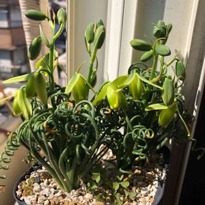 おはようございます😃 以前から紹介しています、g sで買った アルブカ ナマクエンシス 花が咲きそうです。かわいいです💕😍 これからもっと大きくなるのかなぁ?冬型だとこれから枯れてしまうのかな。。