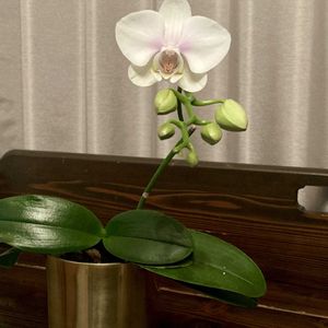 去年、ミディ胡蝶蘭のモニターでいただいた ファーストラブちゃん💕 蕾が出てきた〜!!とワクワクして待っていたらようやく咲いてくれました😍 🔰の私が育てて…まさかの開花ですごくHappyな気分です🙌💕
