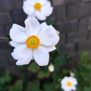こんにちは😃 気持ちの良い秋晴れですネ🩵🩵🩵 花壇の秋明菊が咲きました🤍💛🤍 今年は猛暑のためか株が小さくなって花が少ない感じです それでも頑張って咲いてくれたことに感謝デス😘ありがとう❣️
