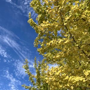 おはようございます。 銀杏の葉が風に揺れていました。 銀杏もたくさん落ちていました。