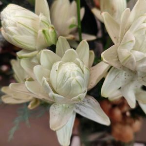 こんばんは😃 11月最初の日曜日いかがお過ごしですか♪ 教会のお花⛪ ストレリチア🧡 トルコキキョウ…カシス💗 リンドウ…ささ雪🤍 紅葉ヒペリカム♥️ ドラセナ💚