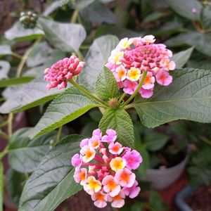 おはようございます👋 ランタナが綺麗に咲いています💕 緑色の可愛い実も奥に見えて います💚 2,3枚目はクラリンドウの今日の姿 今にも開きそうでワクワクして きました😍🤍💚
