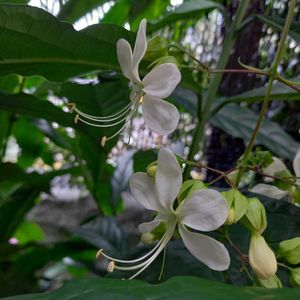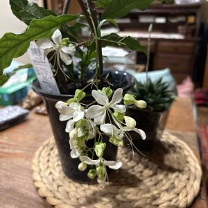 垂れ下がる白い花がなんとも可愛い クラリンドウ 別名は長くて、 クロデンドルムウォリッキー といいます。 園芸店の半額セールでなんと250円 お買い得で飛びつきました!
