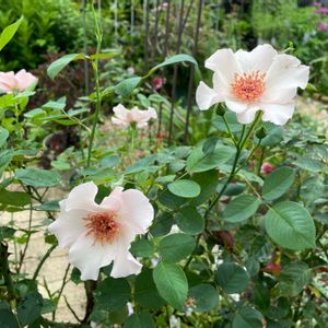 バラ 🌹2年目の春霞 一季咲きですが、優しい雰囲気のバラです。 地植えで伸びましたが、下の方ばかり咲いています😅 🌹昔から植えられている名無しさん2種 🌹木立性のデンティベス 一重ですが、淡いピンク色が優しげです💖 スパイシーな香り