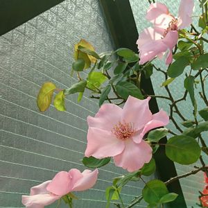 つる薔薇デンティベスが 咲きました。 優しいピンクの薔薇です。