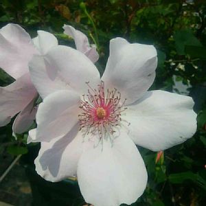 挿し木で貰った薔薇が咲きました💗 ピンク色のシベが可愛い🌹さんです.•*¨*•.¸¸♬