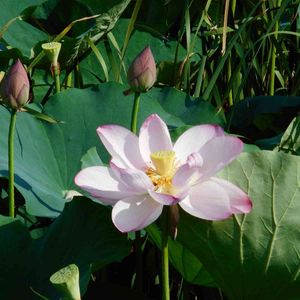 蓮子の花を見に 行ってきました。 蕾もぷっくりとして綺麗です。 管理している地区の方の話では、 朝8時半頃から開いて お昼頃には閉じるそうです。 そして、それを4日ほど繰り返し 散るのだそうです。 蓮子の名前は、 二千年はす(大賀はす) 二千年前の地層から発見され、 発芽して花を咲かせ、種が 巡り巡ってきたものです。 二千年前のどんな人たちが 眺めていたのでしょうね。