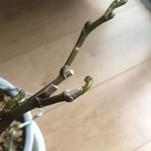 今日のお花,我が家の胡蝶蘭。いただいて3年目になります。昨年の花が終わった後,切り戻したところから花芽が3つ出ています。寒さに負けずに咲いて欲しいです。