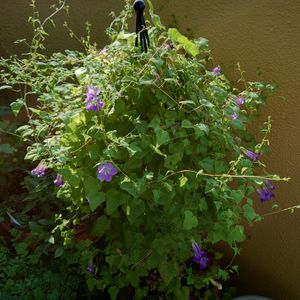 こんにちは😊 台風一過で少し青空がみえて時々陽も照っています☀️ これから台風が接近する所や大雨になっている所の皆様気をつけて下さいね‼️ 花がたくさん咲き始めた【アサリナ】先日upした時は【桃すだれ】と言っていたけど…どうも色を見ると【藤すだれ】のようです😅 ツルもどんどん伸びてネットに絡んでいます😀