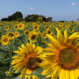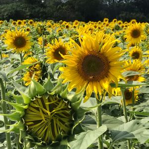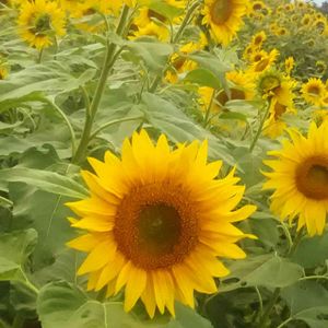 さっき近所のひまわり畑に見回りに行ってきました。 まだ五分咲き位かなあ✨ 急いで咲かなくて良いから、みんなに元気を届けてちょうだいね (^o^)💕 🌻🌿🌻🌿🌻🌿🌻🌿🌻🌿