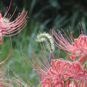 「エノコログサとヒガンバナ」 今日は、モフモフのエノコロさんが主役です☝️😊 🏷木曜モフモフ