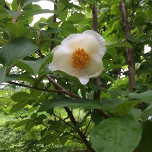花言葉『はかない美しさ』 夏椿が咲きました✨ 白い小さなお花で椿に似ています。 一日花で咲いてもその日に花の形のまま 下に落ち、その落ちた姿ははかない 美しさを感じます。 樹高5メートル以上にもなり 見上げてしまいます。 庭木にしては高いですね。 別名は沙羅の木 樹形、葉も美しいのですが ツルツルの樹皮に特徴があり 見ていると必ず触りたくなります! 我が家のガーデンでは 特にお気に入りの樹木です。😌