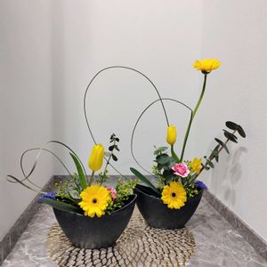 おはようございます😊 今日も良いお天気で、気温も上がりそうです☀ 昨日は半年に一回の歯科クリニックの検診でした🪥 またまた、素敵なお花さん達が出迎えてくれました💐💛💗💟💖 ①統一感と流れがある素敵な生け花🌼🌸🌿 ②華やかさもりもりのアレンジ💐 ③エレガントなピンク色の蘭🌺 鉢を覆うプチプチの多肉さん?も可愛らしい❇️❇️✨ ④シックな雰囲気の寄せ植え❇️💜💛🤎❇️