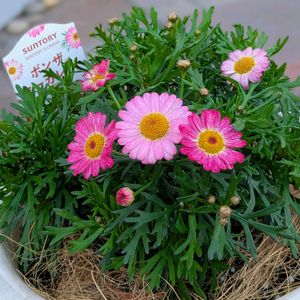 ボンザマーガレットサンライズピンク 昨年のサカタのタネさんの横浜ガーデンセンター閉店ひと月前に購入した株です。 思い出のマーガレットになってしまいましたが、一番花が開花し始めました♪