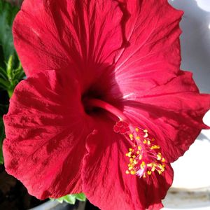 おはようございます 曇り空が一点太陽のお目覚めです☀️ 3枚投稿横にスライドして見てね♪ 挿し木のハイビスカス2つ目のお花が咲いていました🌺 鮮やかな色の可愛いお花です 最後の1枚は雌蕊が下の方についていたのでアップで投稿しました🌺 12月16日朝撮影