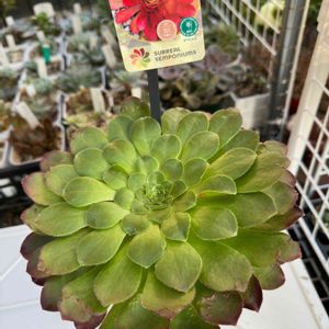 今日、HCでセンポニウムに出逢いました😳 GSで見かけたことあるけど、 センペルビウムとアエオニウムの交配種。 両方のいいとこ取りで 成長が早く耐寒性あって、しかも真っ赤に? そりゃ欲しくなりますよね😅 今はこんなグリーンだけど、 ラベルのようになったらいいなぁ~😍