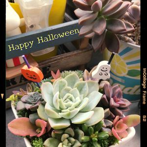 🌵エノプラ💥 室内管理組ですが徒長気味なので お外で日光浴🌞✨ 葉焼けしませんように🙏 ハロウィン寄せ🎃も 根付いた様子🥰🌱 ぼちぼち冬支度⛄かな〜🤖💨