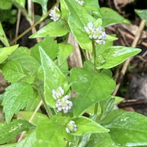 犬香需 イヌコウジュ シソ科 イヌコウジュ属 分布 北海道 本州 四国 九州 沖縄 花期 9〜10月 ・葉 やや厚く、 卵形-長卵形で6-13の低鋸歯となる。 ・花 花冠 淡紫色 多数つけ る 萼 裂片の先端が尖る ・乾いた山野や道端に生育す る。 エノコログサ、カヤツリグサなどで覆われた空き地の隙間に生えていました。