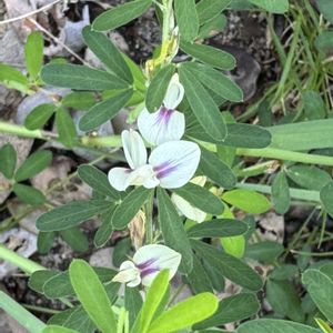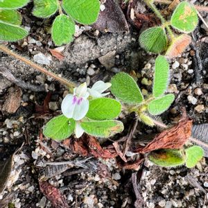 猫ハギ ネコハギ マメ科 ハギ属 分布 本州 四国 九州 花期 7〜9月 日当たりのよい草地や道端など、やや乾いた荒れ地に生育。 全体に黄褐色の毛が密生している様子を猫に例えたと言われている。 茎が立ち上がらず、枝分かれしながら地表を這う。 暑過ぎて散歩もできずにいましたがそろそろネコハギが咲いているのではと思い見に行きましたら可愛く咲いていました。