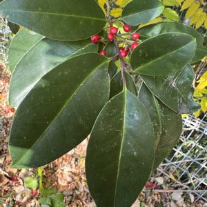 モチノキ 黐の木 別名 ホンモチ、モチ モチノキ科 モチノキ属 分布 東北地方中部以南の本州 四国 九州 南西諸島 在来種 花期 4月頃 果実期 11〜12月 ・和名は樹皮から鳥黐が採れることに由来する。 ・葉がクチクラ層と呼ばれるワックス層に覆われていることから塩害に強く、寒気の強い内陸では育ちにくい。 暖地の海辺に自生する。 ・雌雄異株 ・株が性転換する ・葉 長さ4〜7cm 幅2〜3cm 楕円形〜倒卵状楕円形 皮質、濃緑色 ・果実 径10mm〜15mm 内部に種子が1個 ・有毒 いつもの小山、木が昔から生えているような場所に生えています。 だんだん整備の手が伸びてきています。整備されませんように。