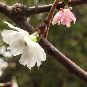 子福桜が咲き始めました 🌸 …フユザクラの一種、花一輪に2〜3個の 🍒がなります。これを子宝に恵まれたものとして名付けられました。