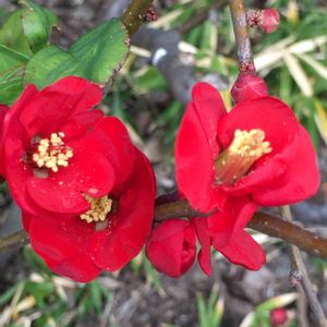 雨上がりに訪れた庭園、あちこちで 紅色のボケが咲き出して…❤️