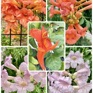 ⭐️9月も元気なノウゼンカズラ⭐️ 夏からずっと咲いているノウゼンカズラ… 大好きなお花です🥰 オレンジ🧡とピンク💗はご近所で、 真ん中は公園温室で初めて見た"ヒメノウゼンカズラ"