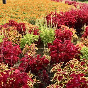 暑さ本番中の8月初旬、出かけた公園は 🧡ジニアと❤️コリウスが広がり… "ウン❗️秋っぽい"🥰 (市内、戸田川緑地公園にて)
