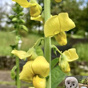 *ベビーマラカス*《幸福の鈴》🔔✨ 別名・こがねたぬきまめ(黄金狸豆) 下から順に上へと花が咲いていきます、 花後に出来たサヤを乾燥させて振るとタネがサヤから外れマラカスのような音♪が鳴ることからの花名🔎 今日29日はフクロウ祭🦉…"フク"繋がりで参加させてください💖